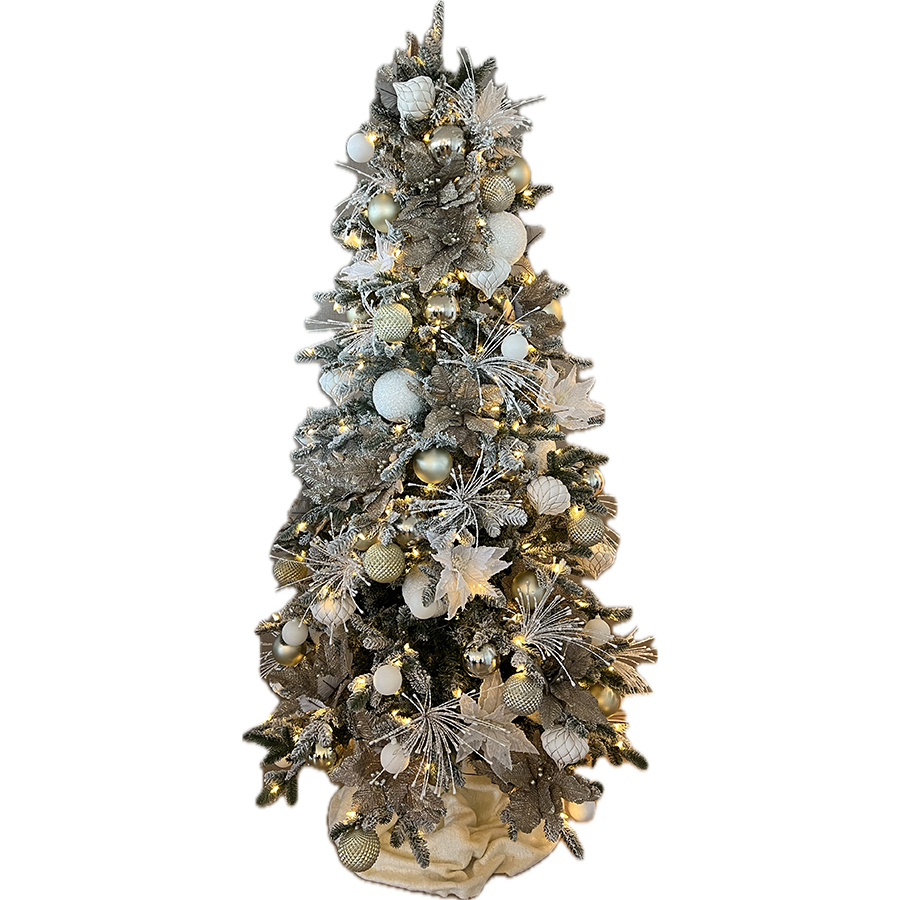 Fully Styled Tree with one set of LED lights and decorations. (Extra lights available on request)